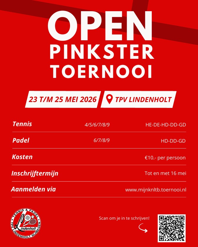 Daarnaast zijn we op zoek naar mensen die tijdens het toernooi een bardienstje willen draaien. Je kunt je aanmelden via de knop "diensten" in de KNLTB app of mail naar pinkstertoernooi.tpvlindenholt@hotmail.com