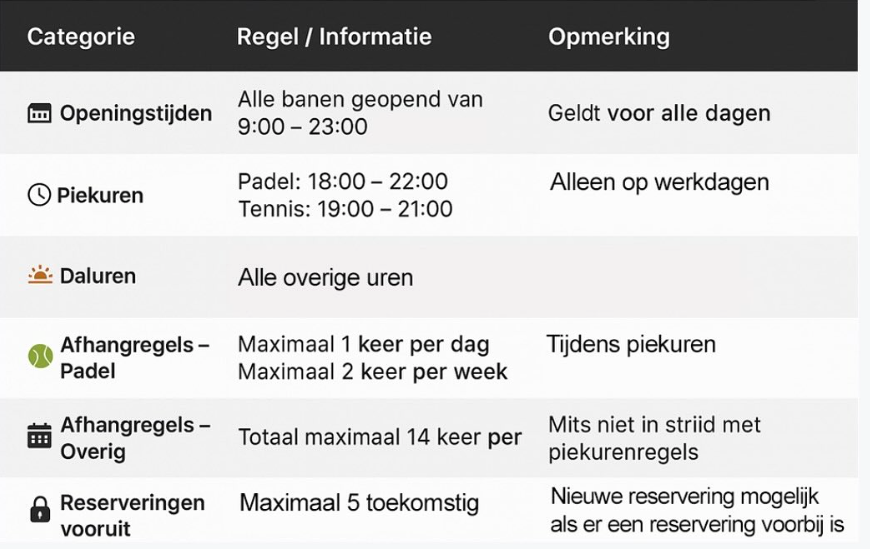 Regels voor reserveren via KNLTB ClubApp